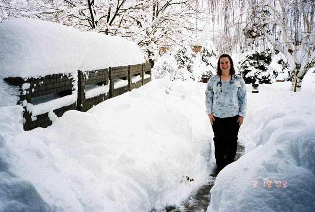 Leo digging out from the blizzard! He's made good progress on the front walk to Bob and Annie Brooks house in Denver, where Leo and Mary are staying.