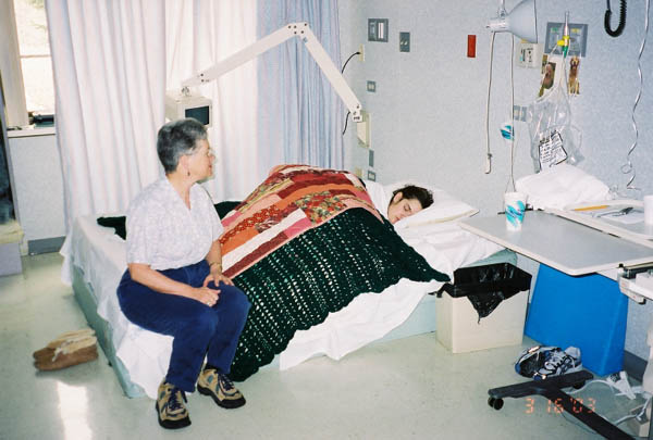 Mom is finally getting a knack for those awesome French braids like Heather and Pam, Marla's favorite rehabilitation technicians, do for her.