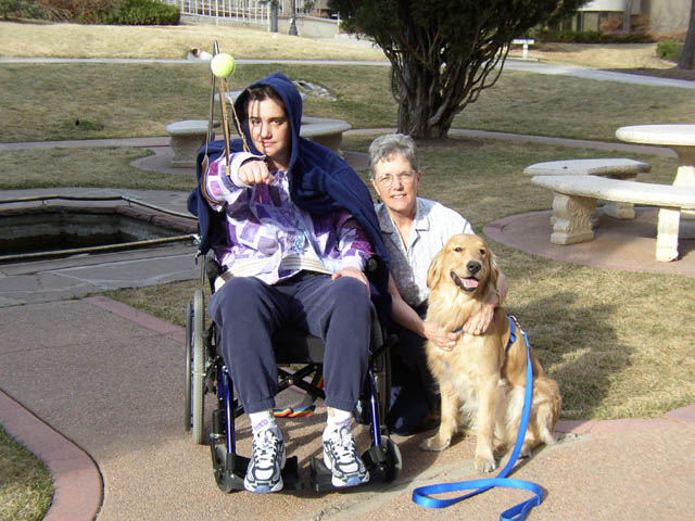 Marla gets a sweet "kiss" from Woody. Rachel, her re-habilitation technician gives him a friendly pat on the back. Rachel's family is from Ouray, Colorado, where Marla's parents grew up.