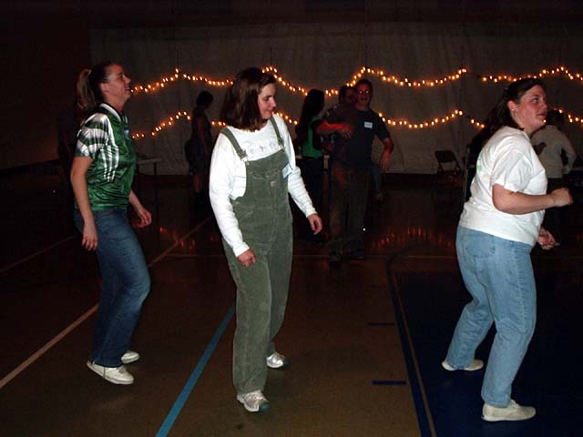 At Craig's evening St. patrick's Day dance, Marla surveys the dance floor with friends Ken and Billy, fellow Craig patients.