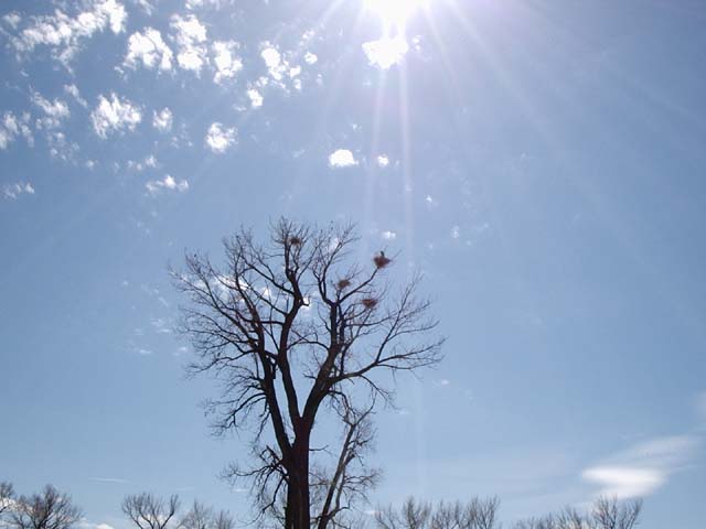 One of the highlights of the Colorado River trip was a swing by the rookery of the Great Blue Heron, nesting for the spring. Very beautiful, graceful birds. If you look hard, you can see a Heron in the upper right hand nest within the tree.