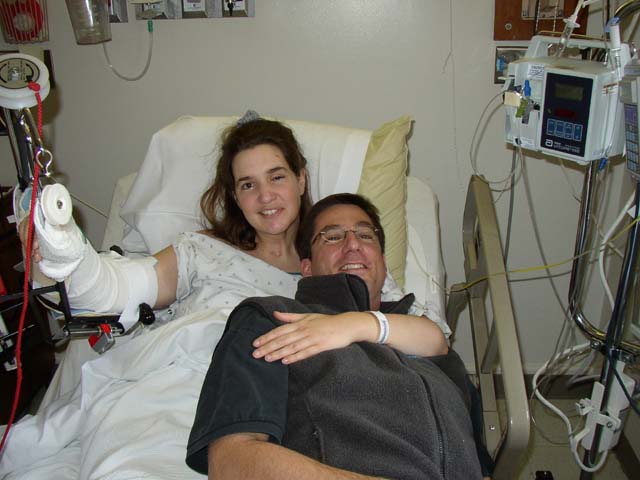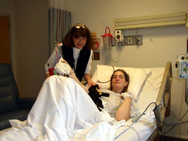 Celeste, Marla's PT at Craig Hospital, came to visit her after her surgery at Swedish. Celeste was a great help in setting up Marla's CPM (automatic range-of-motion) machine, and helped lift Marla's spirits.