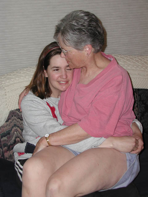Living it up with "dog time" at every chance she can get, Marla hugs friend Daisy during a visit from friends Julie Andersen and Liz Beerman.