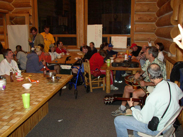 The whole rafting group takes a break for lunch while on the river. The BIAC camp wasdivided into three groups (or "tribes," if you prefer Survivor-speak) each of whichselected a name for itself. Marla's group called itself the "Sun-Baked Sardines."