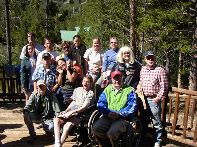 Marla, Ed, and Vikki are taking in the scenery and wildflowers on a walk around the lake afterdinner. Ed Reinhardt, a fellow camper, was a CU Football player 20 years ago, whenhe suffered a traumatic brain injury on the field of play. Ed and his father team up togive motivational speeches.