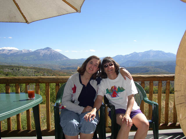 Marla and her cousin Valerie enjoy some cool drinks in the sun, along with some incrediblescenery, during a visit to Aunt Judy and Uncle Joe's cabin above Paonia Reservoir.