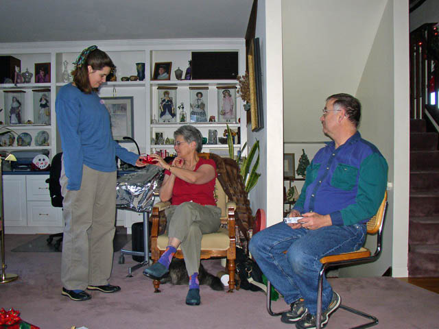 Marla is excited with the Southwestern storyteller figurine who is telling stories to her cats! A delightful gift from friend Sylvia Lemmon, of New Mexico.