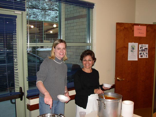 Jen Cianfrance (Joslin), High School Friend of Marla and Parvin Erlandsen, another family friend from swim team. Dishing up the hot soup!