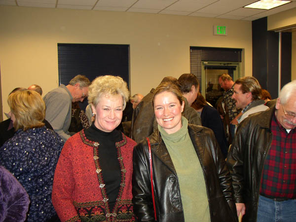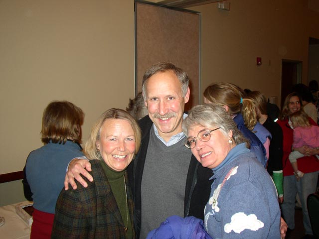 Nancy and Jim Barnett, friends from the Sopris Barracudas swim team, talking with Mary Williams, Marla's Mom (center).